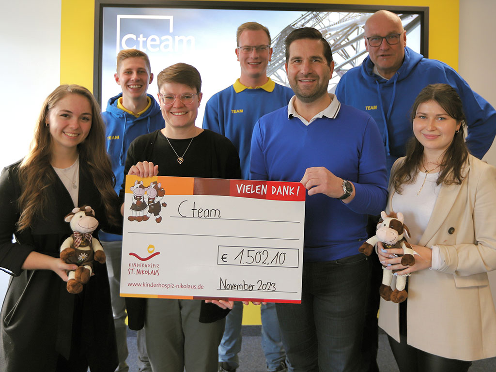 Es seien die drei „V“, die aktuell so wichtig seien, so Hubert Deutsch aus der Geschäftsführung des Ummendorfer Cteam Consulting und Anlagenbau GmbH: „Verbundenheit, Verantwortung und Vorbilder braucht unsere Gesellschaft,“ dankte er den Vertreterinnen von Caritas Biberach-Saulgau und Kinderhospiz St. Nikolaus in Bad Grönenbach und deren Teams für ihr wichtiges soziales Engagement. Aus seinen Händen bekamen beide Institutionen einen Scheck über gut 1.500 Euro.