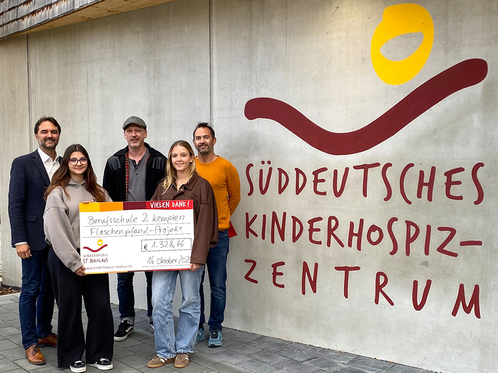 Das Geld übergaben die Auszubildenden nun persönlich an das Kinderhospiz St. Nikolaus in Bad Grönenbach. Die Einrichtung begleitet Familien mit unheilbaren kranken Kindern auf ihrem schweren Weg – von der Diagnose an bis über den Tod des Kindes hinaus. Neben der medizinischen und pflegerischen Betreuung bietet das Hospiz auch psychologische und seelsorgerische Unterstützung sowie Entlastung für die Angehörigen. Das Team des Pfandflaschen-Projekts empfiehlt einen Besuch des Kinderhospizes am Tag der offenen Tür am 23. November 2025 – die Spendenübergabe hat ihnen eindrucksvoll gezeigt, wie wichtig die Arbeit dort ist.