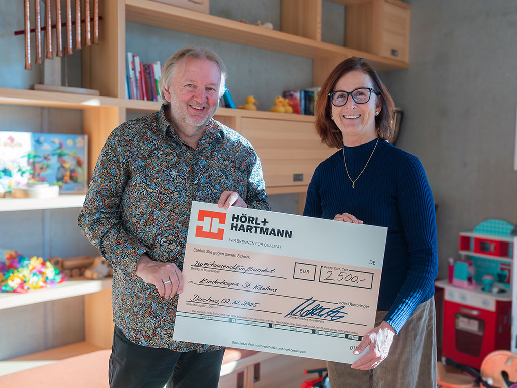 Hörl & Hartmann Ziegeltechnik GmbH & Co. KG unterstützt auch dieses Jahr wieder das Kinderhospiz St. Nikolaus mit einer Spende von 2500 Euro. Traditionell verzichtet die Firma auf Geschenke untereinander und leiten die Mittel stattdessen an Organisationen weiter, die Kindern und Familien in schwierigen Lebenslagen helfen.