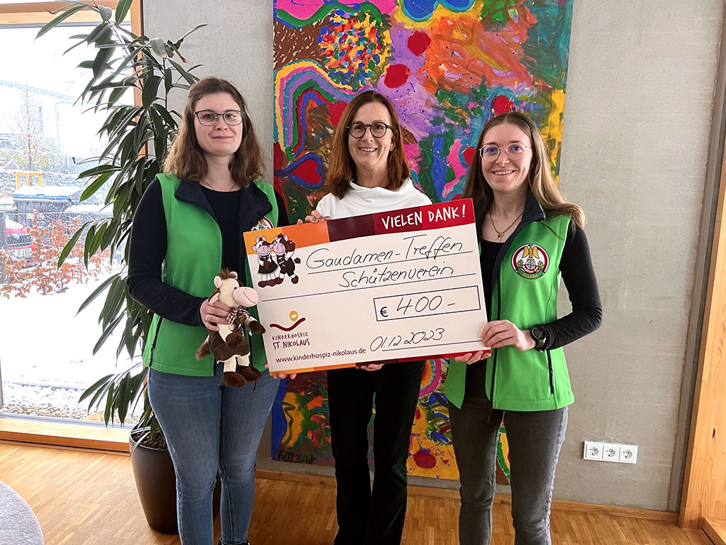 In den letzten Tagen konnte die Gaudamenleitung eine Spende in Höhe von 400 Euro an das Kinderhospiz St. Nikolaus in Bad Grönenbach überbringen. Der Betrag wurde beim 1. Allgäuer Gaudamentreffen im Oktober gesammelt. An dem Samstag konnten die anwesenden Damen gemütlich bei einer Tasse Kaffee und Kuchen zusammensitzen. Zudem konnten alle auch ihr Talent beim Bogenschießen ausprobieren. Die Gaudamenleitung bedankt sich herzlich beim Schützenverein Wildpoldsried für die Bewirtung und Durchführung des Bogenschießens, sowie bei allen Damen für die großzügigen Spenden.