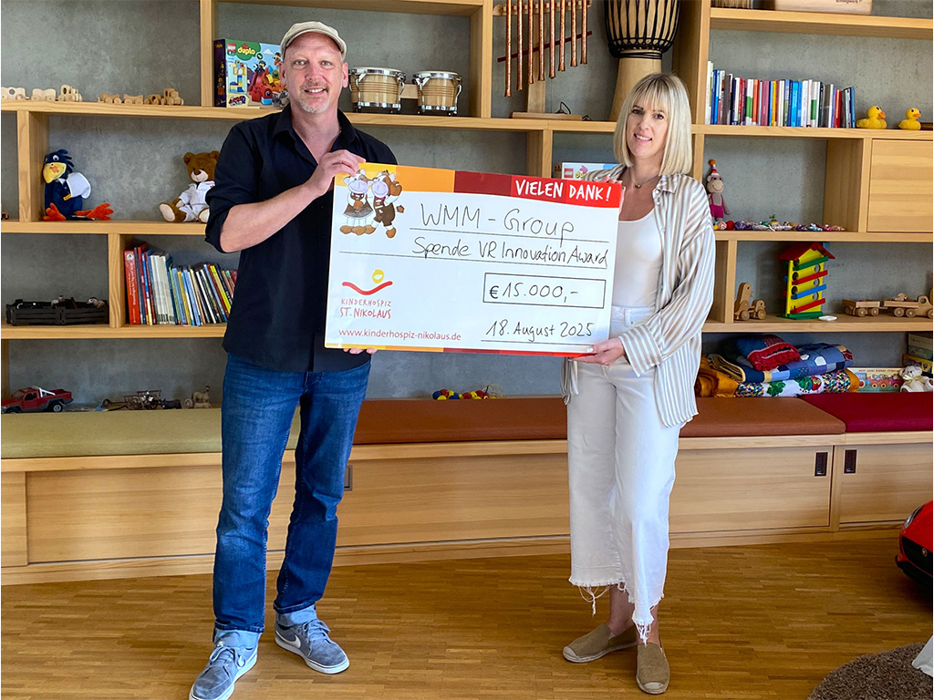 Die WMM AG mit Sitz in Mindelheim hat mit ihrem Unternehmen WWM Modulbau heuer den “VR Innovations Award” in der Kategorie “Handwerk” gewonnen. Dieser Award ist ein Preis der Volksbanken Raiffeisenbanken Baden-Württemberg, der Kreativität und Ideenreichtum des Mittelstandes fördern soll. Er ist mit 15.000 Euro dotiert. Auf der Heimfahrt von der Preisverleihung hat das WWM-Unternehmer-Ehepaar Waltl entschieden, dass das Preisgeld an das Kinderhospiz St. Nikolaus in Bad Grönenbach gespendet werden soll.