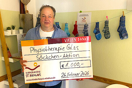 Handgestrickte Söckchen gegen Spende: Wolfgang Glas aus Marktoberdorf unterstützt Kinderhospiz St. Nikolaus