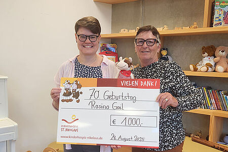 Spenden anstelle von Geschenken: Rosina Gail übergibt eine Spende anlässlich ihres 70. Geburtstages
